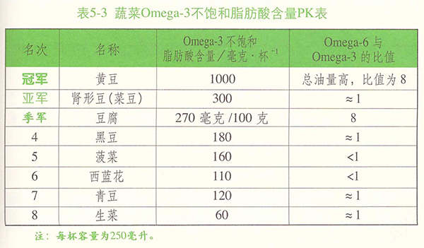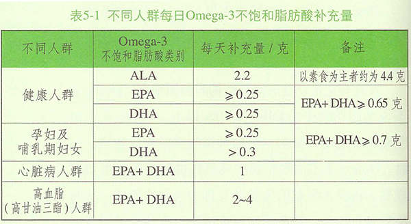 蔬菜主要補(bǔ)充ALA(表5-3)。
